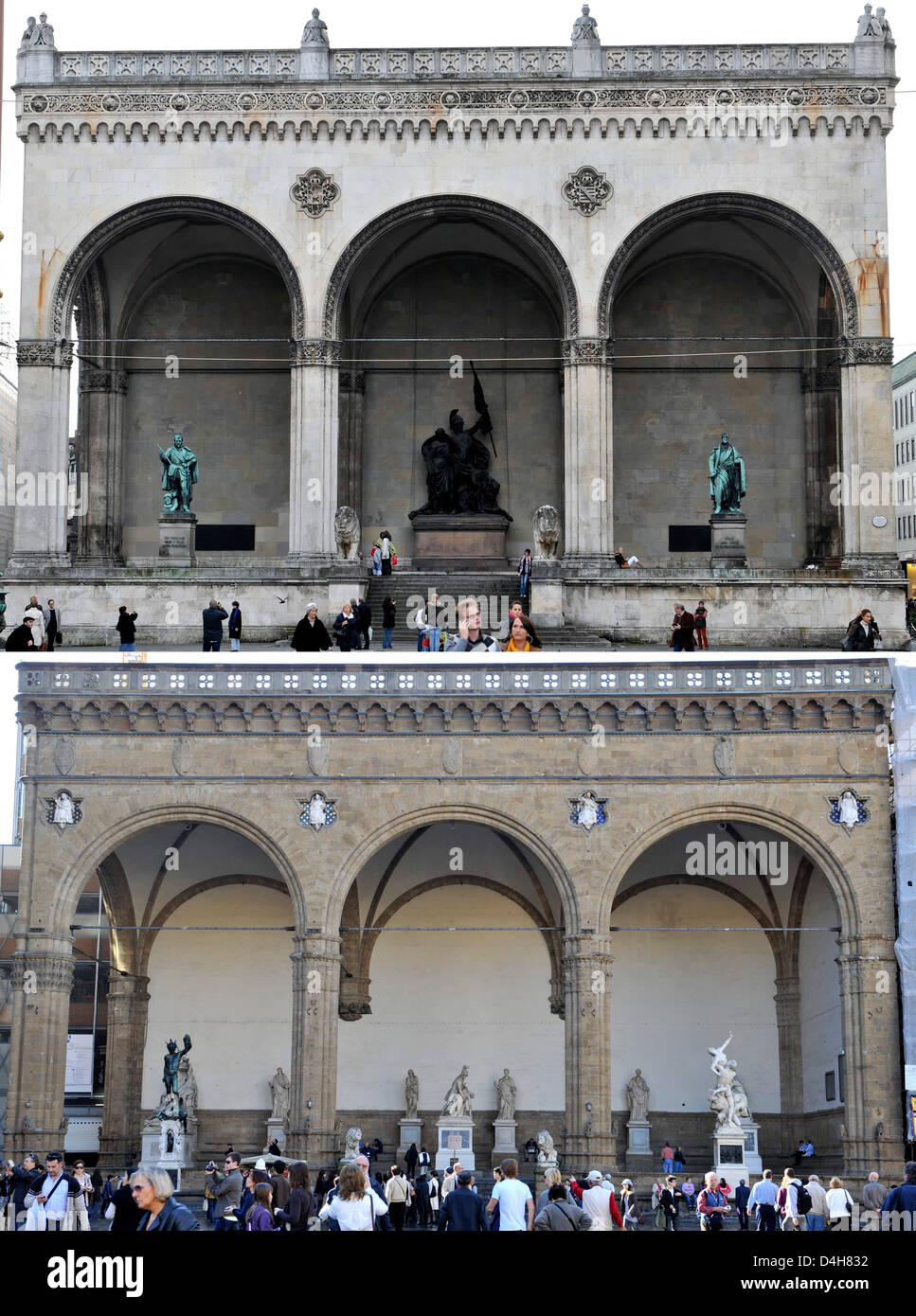 The Picture Combo Shows The Loggia Dei Lanzi Building On