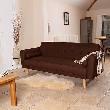 Wido Brown Luxury Stylish Linen Fabric Upholstered Sofa Bed